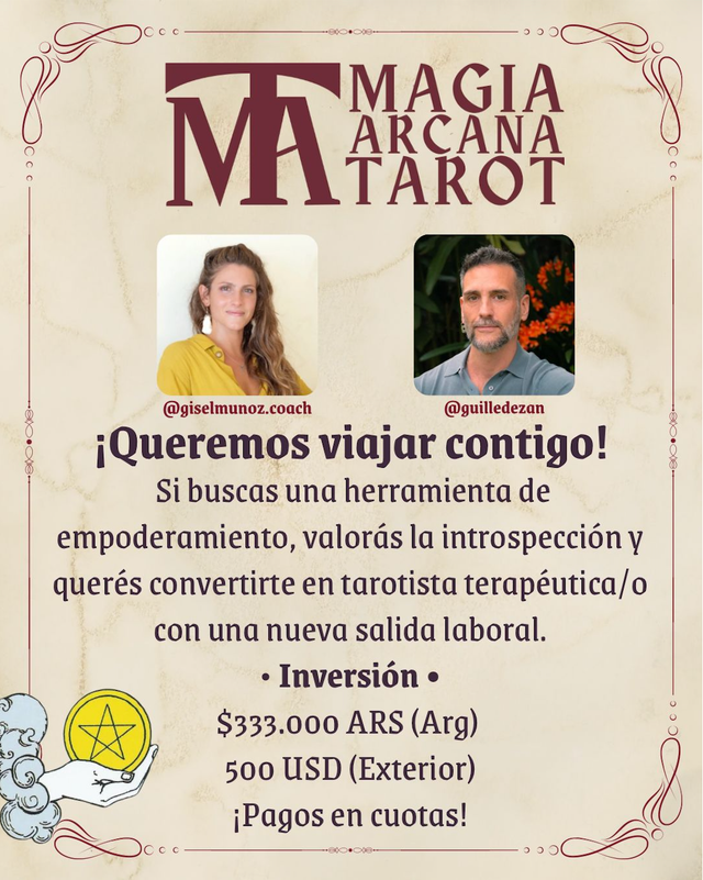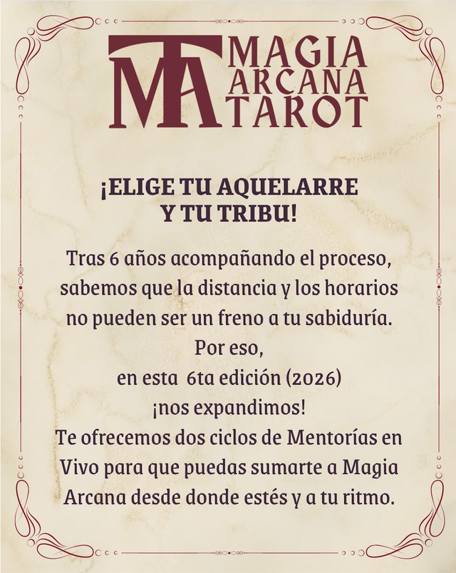 FORMACIÓN ON-DEMAND + 7 MENTORÍAS EN VIVO 2026Si querés aprender Tarot y desplegarte como Tarotista Terapéutico (¡6ta Edición!) esta propuesta es para vos. Vivenciá el conocimiento a tu ritmo con el material de por vida.